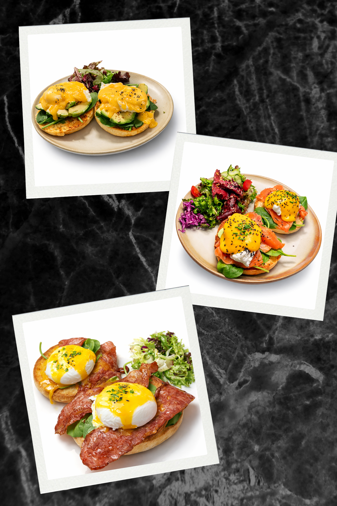 Bacon – Smoked salmon – Ham – Fresh mozzarella cheese – Cheddar cheese – Chicken sausage