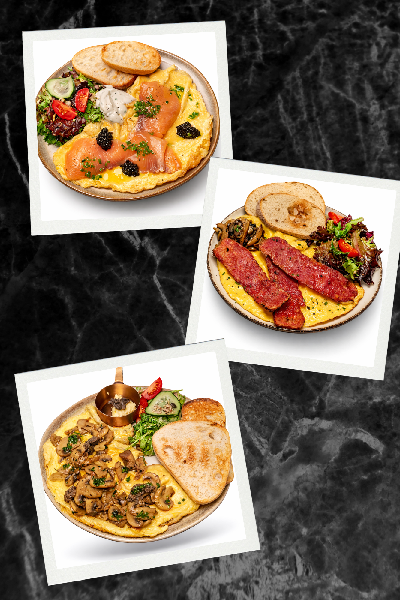 Avocado + €1.5 – Spinach – Mushrooms – Cherry tomatoes – Sautéed tomato – Roasted peppers