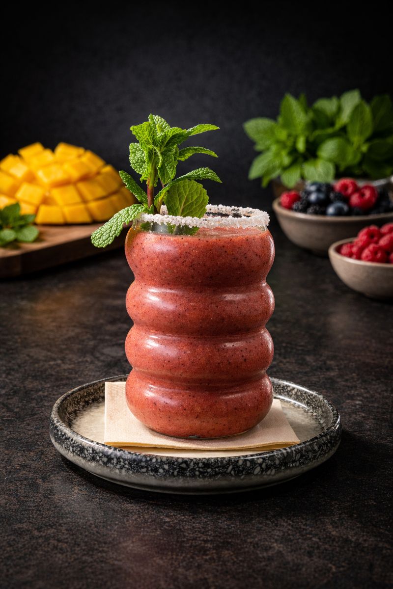 Mango, passion fruit, pineappel, banana, orange juice & coconut milk
