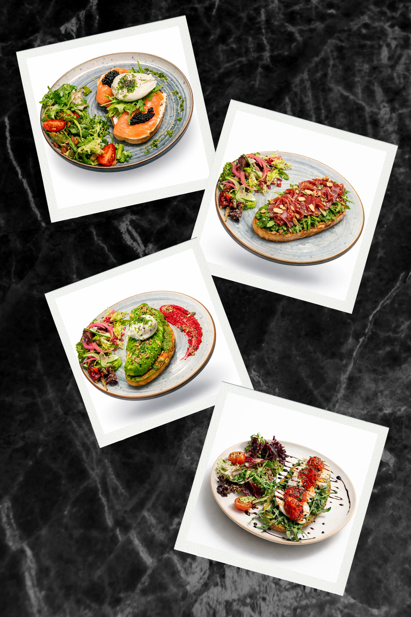 Avocado – €3.00 Iberian Ham – €4.50 Grilled Chicken – €2.50 Smoked Salmon – €3.50 Bacon – €2.50 Mixed Greens – €2.00 Sautéed Potatoes – €2.50 Poached Egg – €2.00 Scrambled Eggs (2 pcs) – €2.50 Mozzarella – €2.00